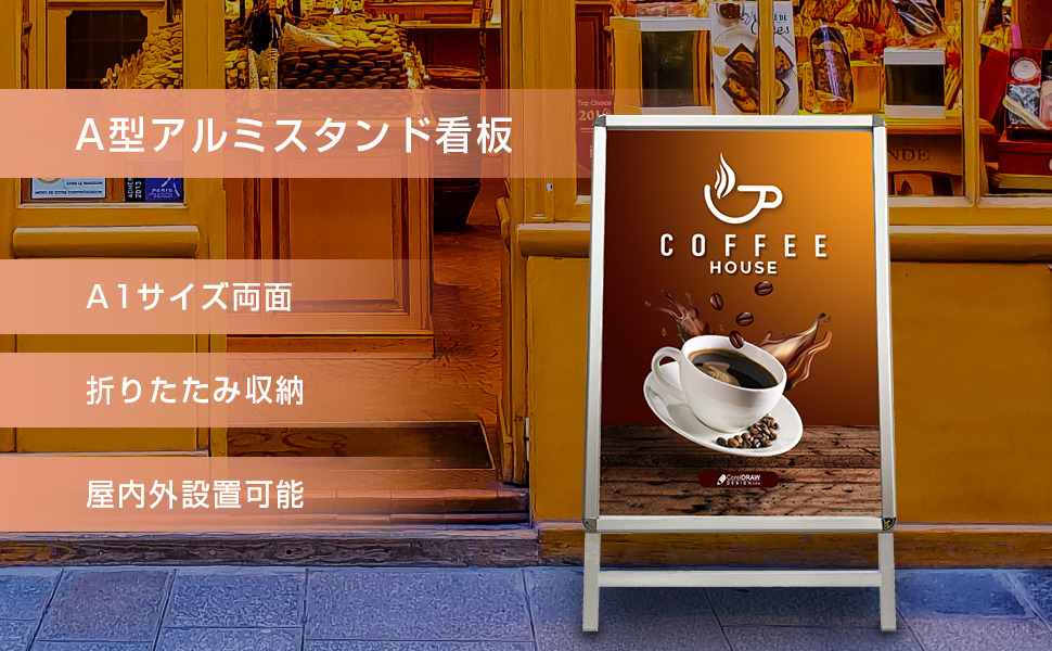A1サイズポスターフレーム看板は、お店やオフィスなどの広告宣伝に最適なアイテムです。ぜひA1サイズポスターフレーム看板を販売促進に活用してください!