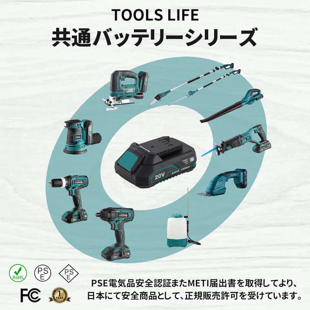 ※純正品でない互換バッテリーの使用は事故につながる恐れがあります。バッテリーはTOOLS LIFE 純正品をお使いください。