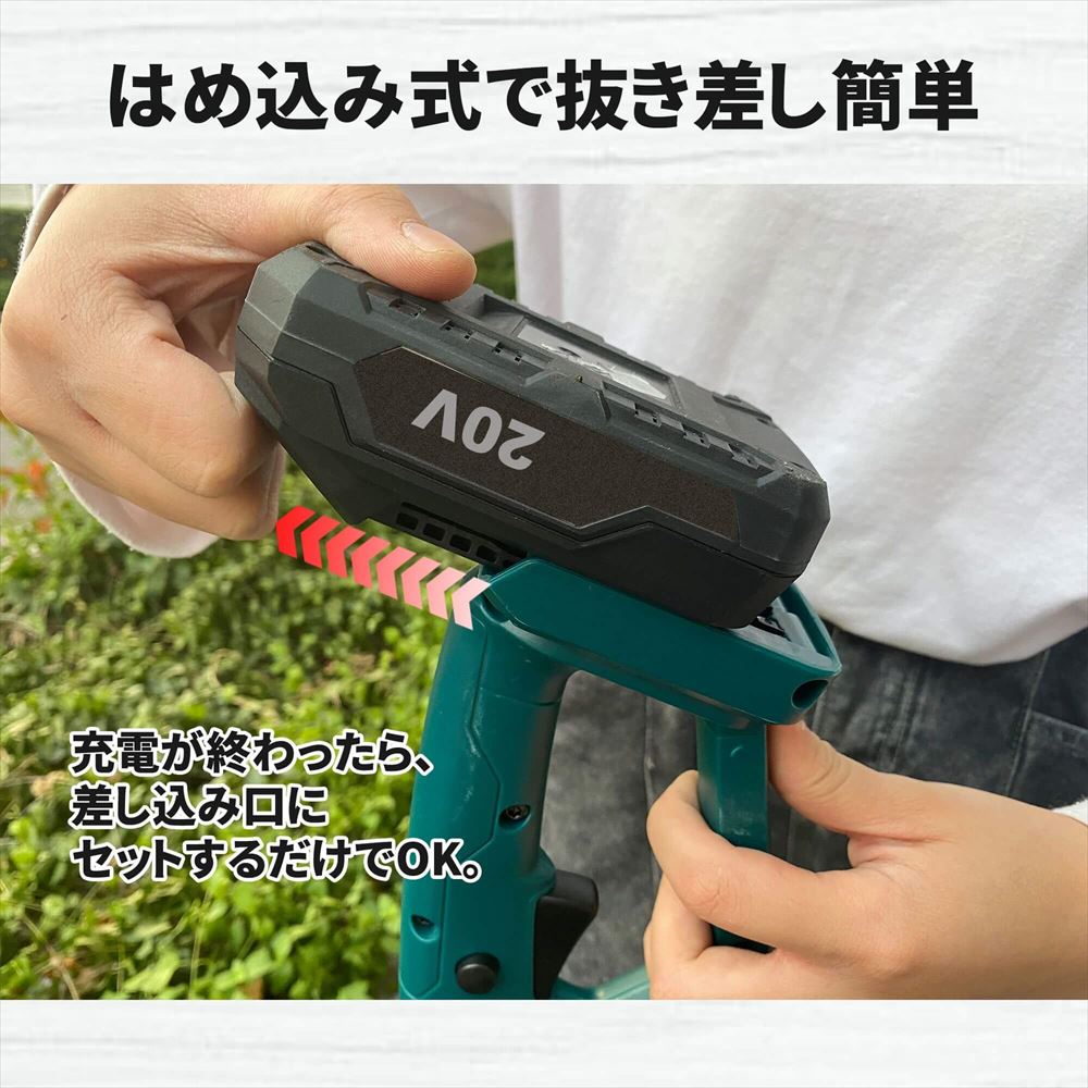 スライド式リチウムイオンバッテリー仕様っで、スムーズです。充電式のリチウムイオン電池搭載で作業量が大幅アップ!