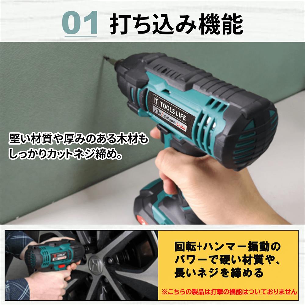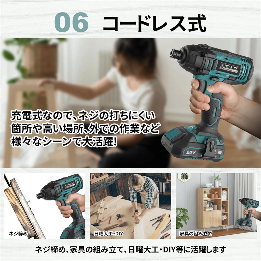 回転&振動で強力な締め付け!本格的にDIYを始めたい方にピッタリのインパクトドライバー 正/逆転手スイッチ、必要な機能を余す事なく採用!専用ケース付きなので使用しない時は、バッテリーや充電器、各種インパクトソケットを収納し片付けも簡単です。