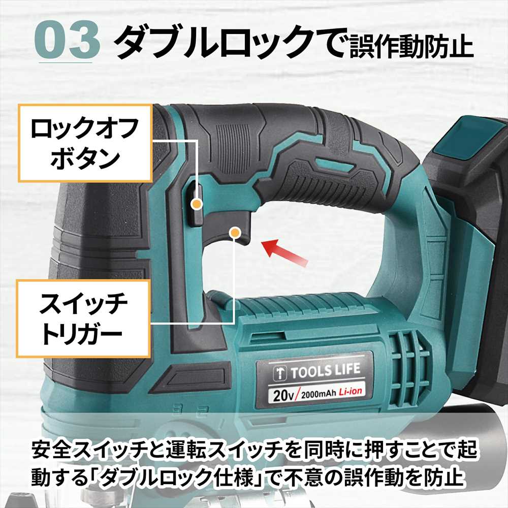 ※純正品でない互換バッテリーの使用は事故につながる恐れがあります。バッテリーはTOOLS LIFE 純正品をお使いください。