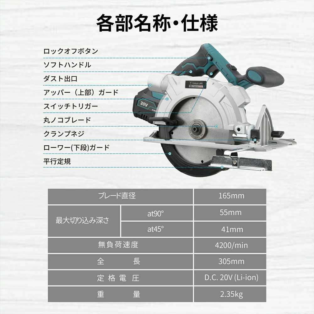 直径165/内径20mmのチップソーに対応しています。