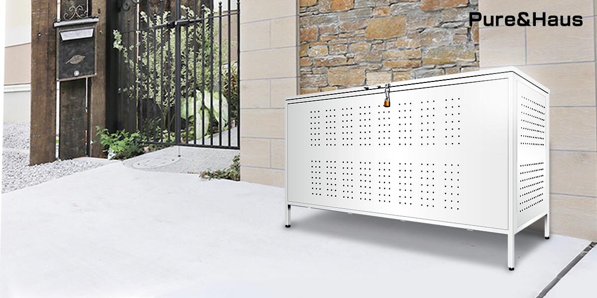 お庭やベランダ、玄関などの屋外のちょっとしたスペースにおける収納ボックスです。見た目も清潔感があり、シンプルなデザインなのでゴミの仮置き場には見えません。