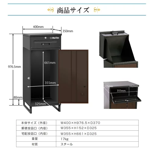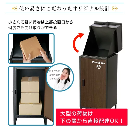 メールボックス付き宅配ボックスです。残業時間を気にしたり、プライベートの時間を有効に使える優れものです。これで、荷物が届く時間を気にせず、外出やお家の用事が出来ます。組み立てはとっても簡単!