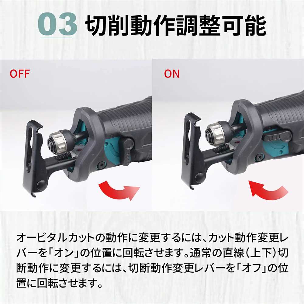 ワンタッチで切り替えできる、切削動作調整。レバーの位置を変更するだけでカンタン操作が可能です。