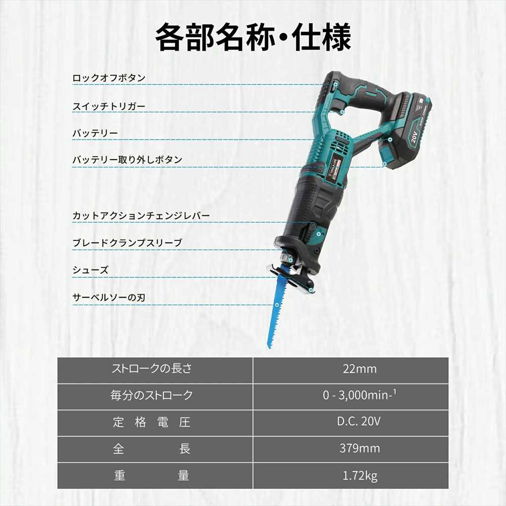 充電式のコードレス設計なので、場所を選ばず、様々なシーンで大活躍です。無段変速機構、高速ストローク、圧倒的な切断スピードと低振動、切断効率アップな充電式レシプロソーです。