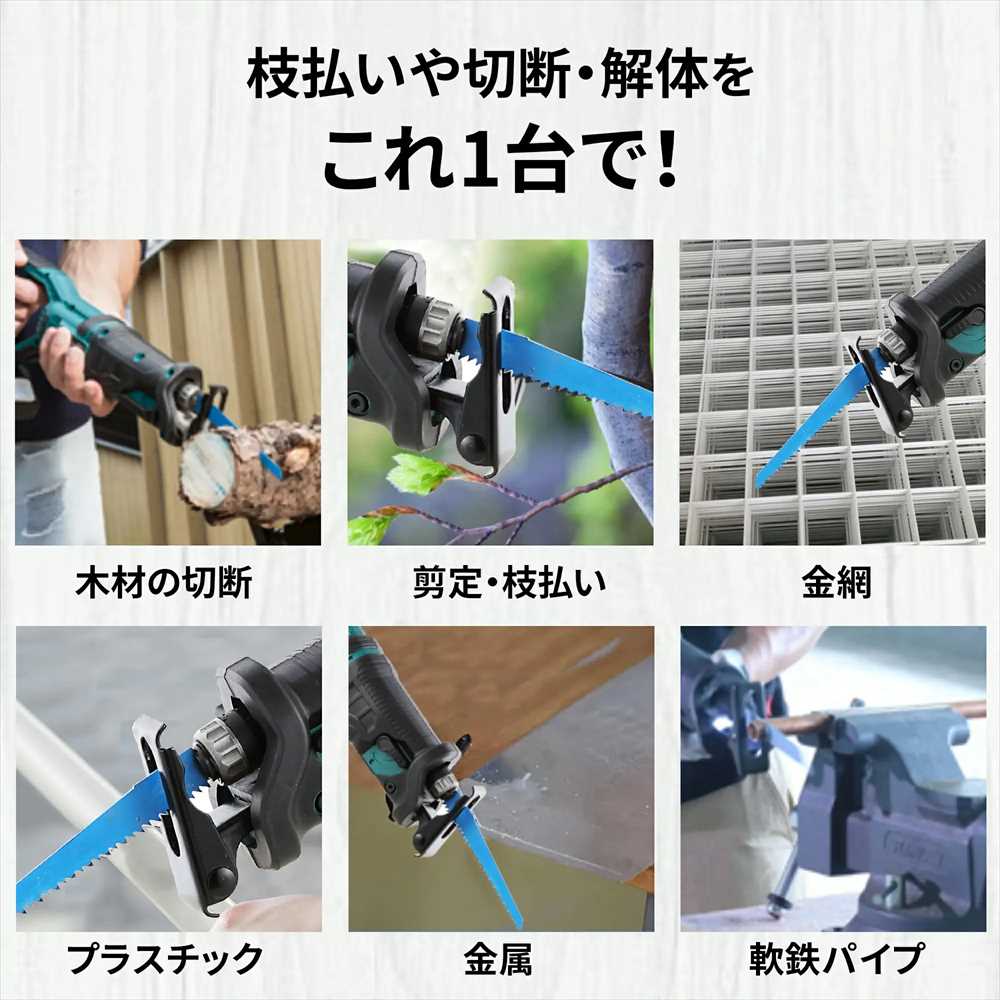リフォーム、設備・配管工事など、狭い場所での切断や少しだけの作業にもおすすめです。庭木の剪定・各種木材・合成樹脂の切断、家庭から出る粗大ゴミの解体作業に使えます。金属、木材、タイルなどの素材を簡単に切断し、家庭やDIYアプリケーションはもちろん、工業用にも最適です