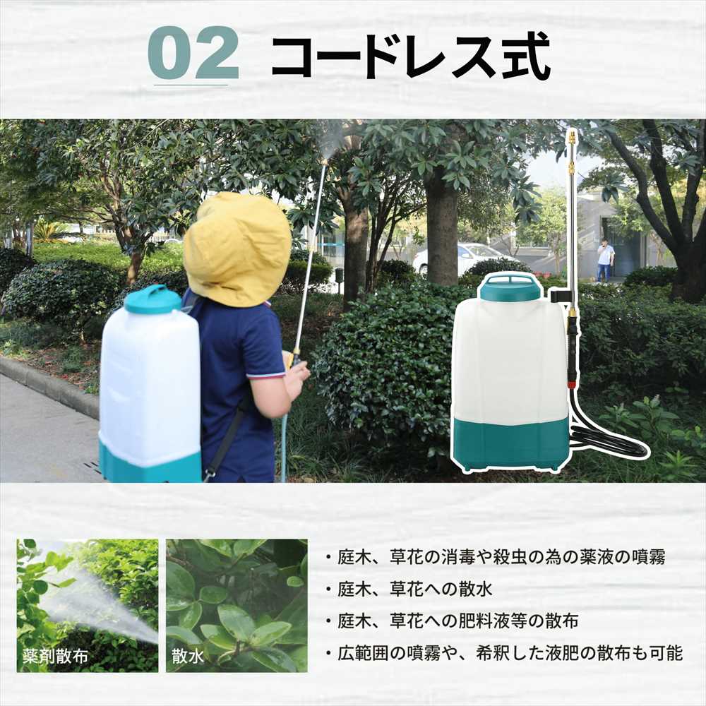 電源のない場所でもご使用いただける充電式噴霧器です。もうコンセントの場所の心配をする必要なし!充電式のコードレス設計なので、場所を選ばず、様々な場所で大活躍できます。