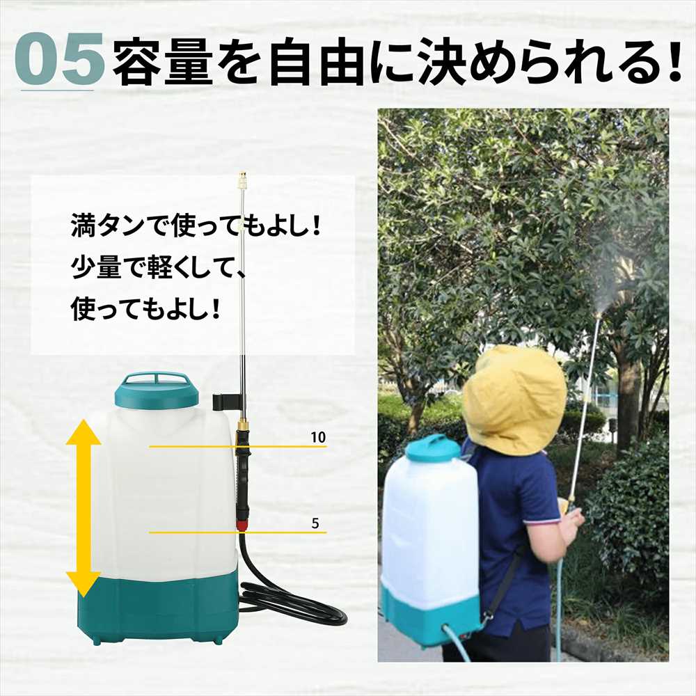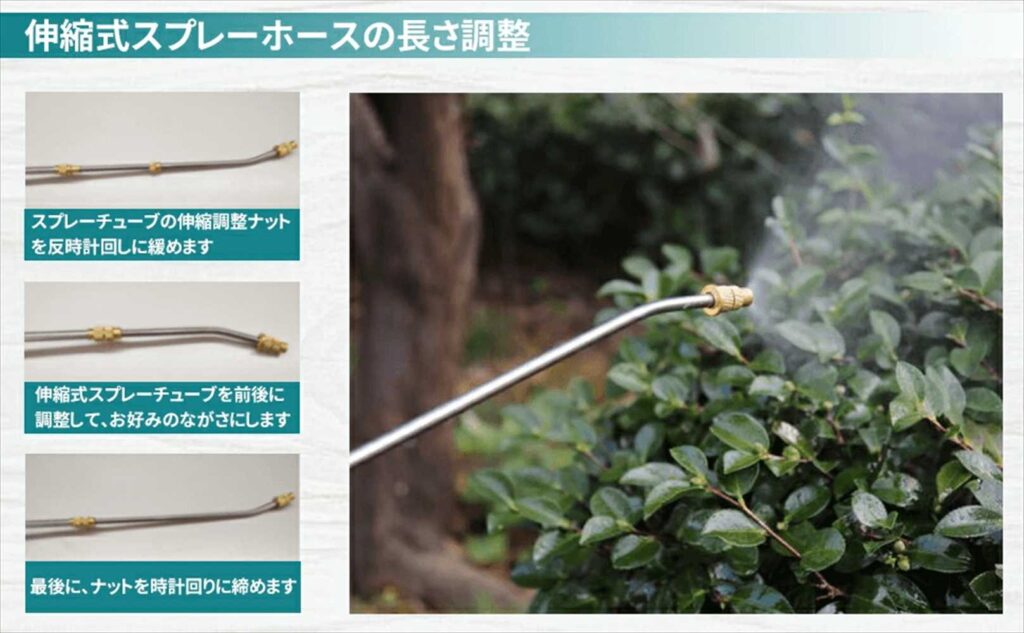 ストレート噴射は清潔作業に最適です。霧状噴射は消毒などに。鉢植えに水をかけるなど、畑の灌漑、害虫の駆除などは、作業シーン(作業の対象、作業場の面積など)によって、気軽に適切なパータンを選んでください。家庭菜園・ガーデニングから農家の方まで本格的な噴霧作業に最適です。