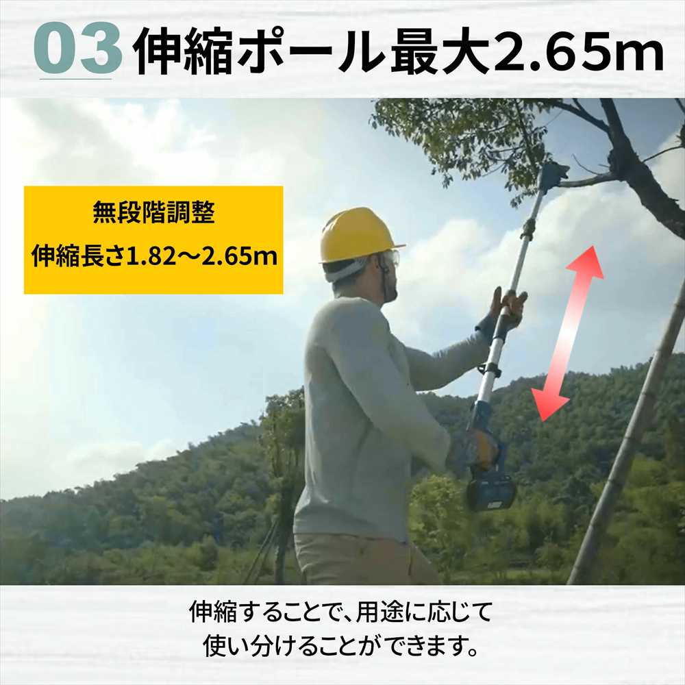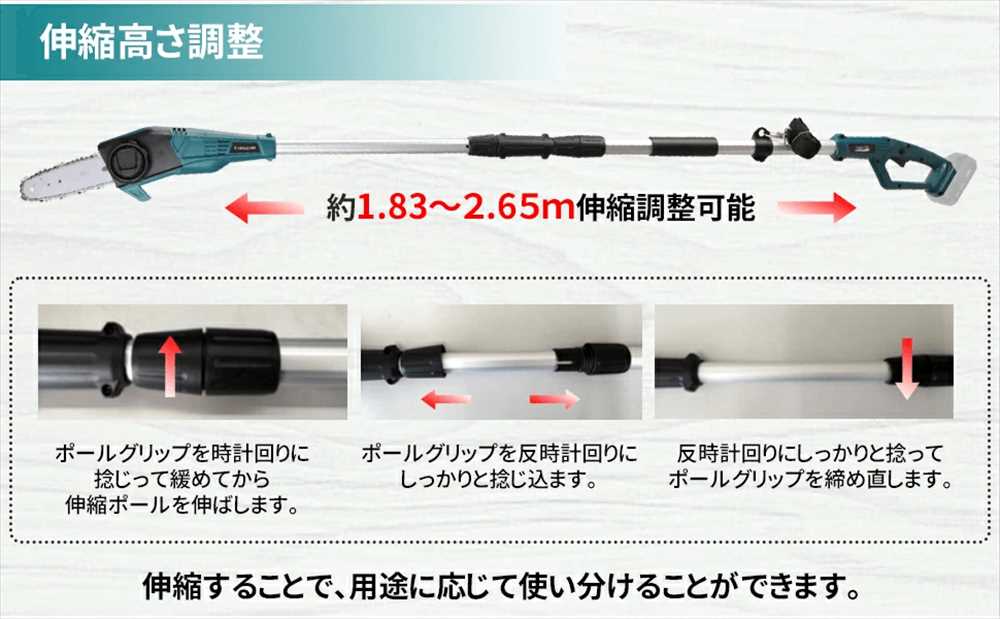 地面から作業ができるのでとっても安心、使用用途に応じて、長さを調整して下さい。