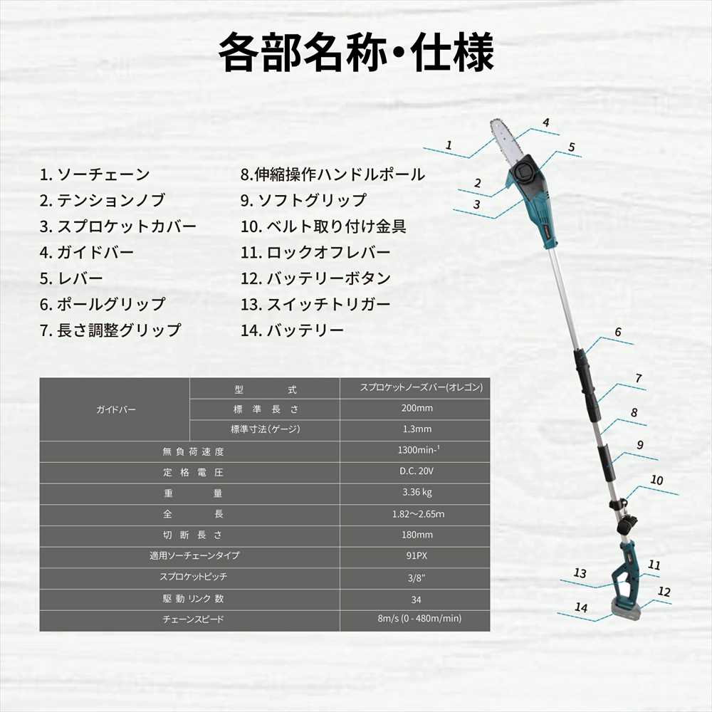 ・チェーンオイルは付属品に含まれておりませんので、別途お買い求めください。